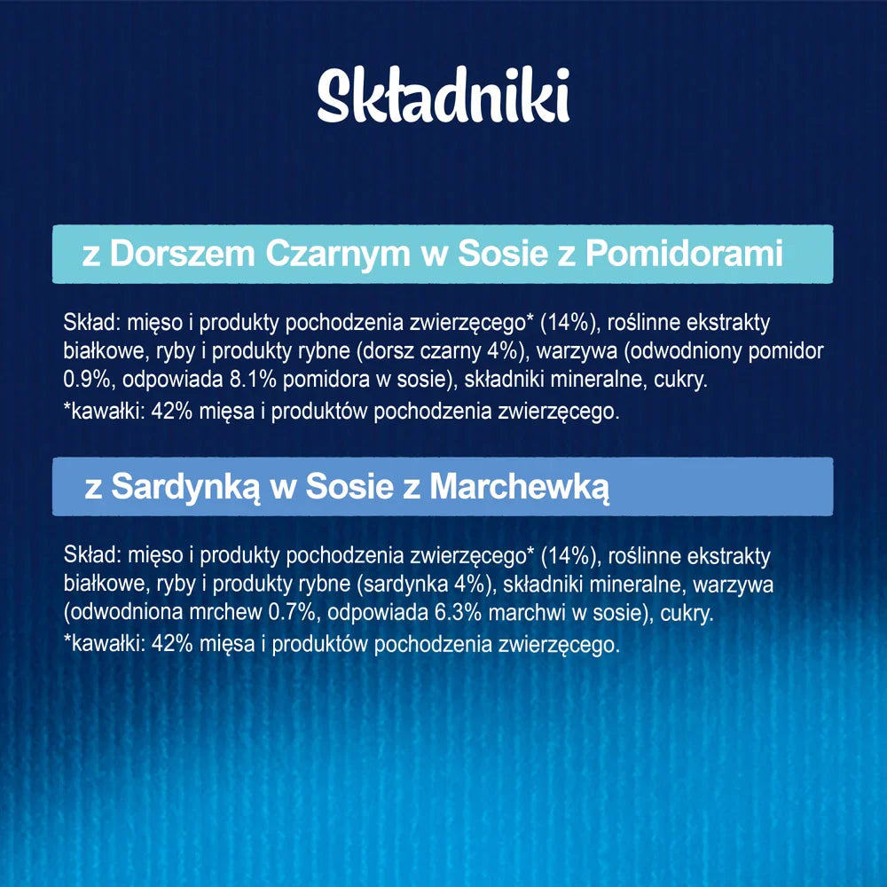 Felix Sensations Sauces är ett komplett våtfoder för vuxna katter och passar även kastrerade katter. Förpackningen innehåller två smakvarianter med fisk i fyllig sås, framtagna för att ge både god smak och en balanserad näringssammansättning som täcker kattens dagliga behov.